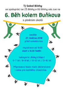 V neděli 27. května 2018 v 9.30 h. odstartuje před sokolovnou ve Břehách již 6. ročník Běhu kolem Buňkova. Prezentace účastníků bude probíhat od 9 hodin. Děti do 16 let se na trase kolem celého rybníka Buňkov můžou těšit na plnění nejrůznějších úkolů, za což je v cíli bude čekat malé občerstvení, cena pro každého účastníka a tři nejlepší v každé z osmi kategorií pak obdrží medaili.