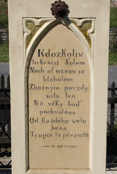 Nápis na zadní straně: Nákladem šlechetných pánů manželů Jana Hizlera hraběcího lesního v Lepějovicích a jeho choti Teresie rodem Čermákové. L. P. 1863