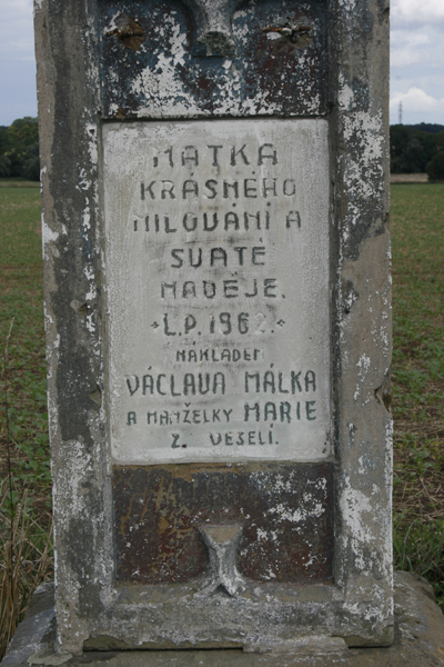 Detail nápisu na křížku u Veselí