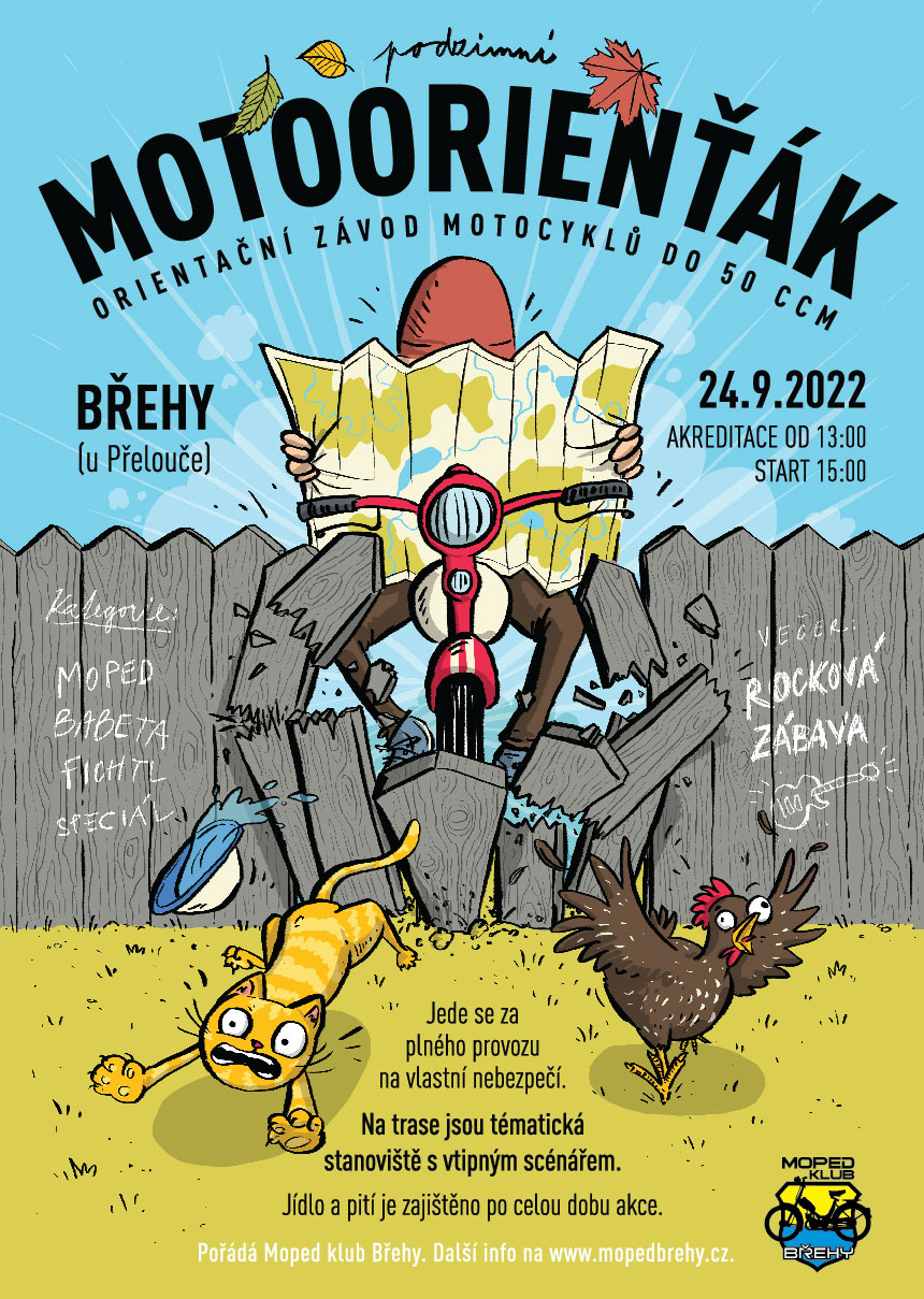 V sobotu 24. září 2022 v 15 hodin odstartuje od restaurace Na Křižovatce orientační závod motocyklů do 50 ccm ve čtyřech kategoriích (moped, babeta, fichtl a speciál). Trasa bude dlouvá 40-80 km a závodit se bude za plného provozu, tedy každý jede na vlastní nebezpečí. Občerstvení zajištěno. Večer po závodě rocková zábava.