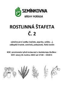 V úterý 24. května 2022 od 17:30 do 19 hodin bude před restaurací v Autokempu Buňkov probíhat výměna jarní sadby (rajčata, papriky, saláty,…), odkopků trvalek, pokojovek, řízků rostlin, ale i semínek.