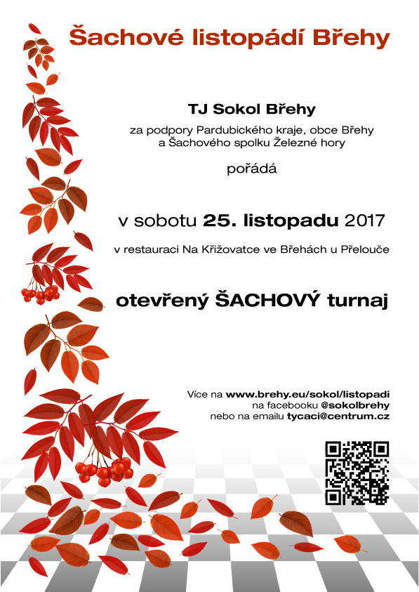 V sobotu 25. listopadu 2017 bude v restauraci Na Křižovatce probíhat otevřený šachový turnaj. Podrobnosti naleznete v propozicích a aktuality můžete sledovat i na Facebooku.