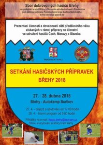 Setkání hasičských přípravek ve Břehách 2018 Publikováno uživatelem Kaca dne 1 dubna 2018, 1:01 am V sobotu 28. dubna 2018 od 9 hodin bude na školním hřišti (na Výrově) ve Břehách probíhat celostátní setkání hasičských přípravek.
