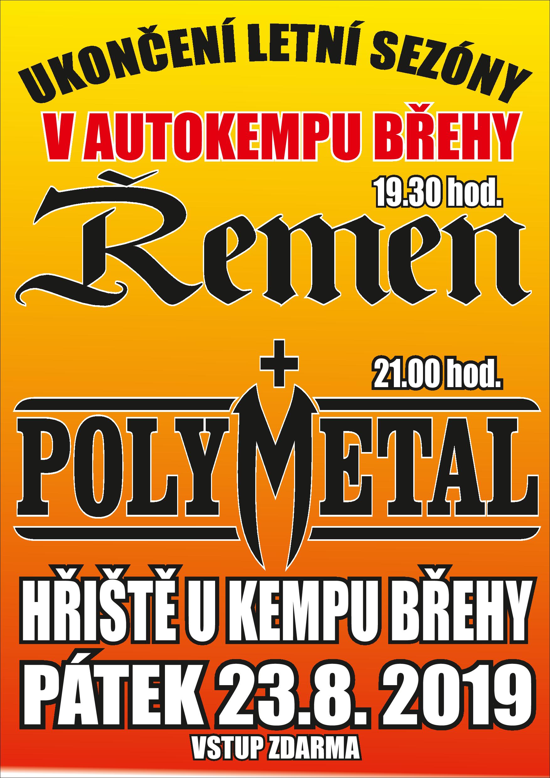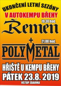 Ukončení sezony kempu Buňkov 2019 Publikováno uživatelem Kaca dne 21 srpna 2019, 10:26 pm V pátek 23. srpna 2019 proběhne na hřišti ve Břehách koncert k ukončení sezony autokempu Buňkov. Od 19.30 hod. zahraje kapela Řemen a od 21.00 hodin Polymetal. Vstup zdarma.