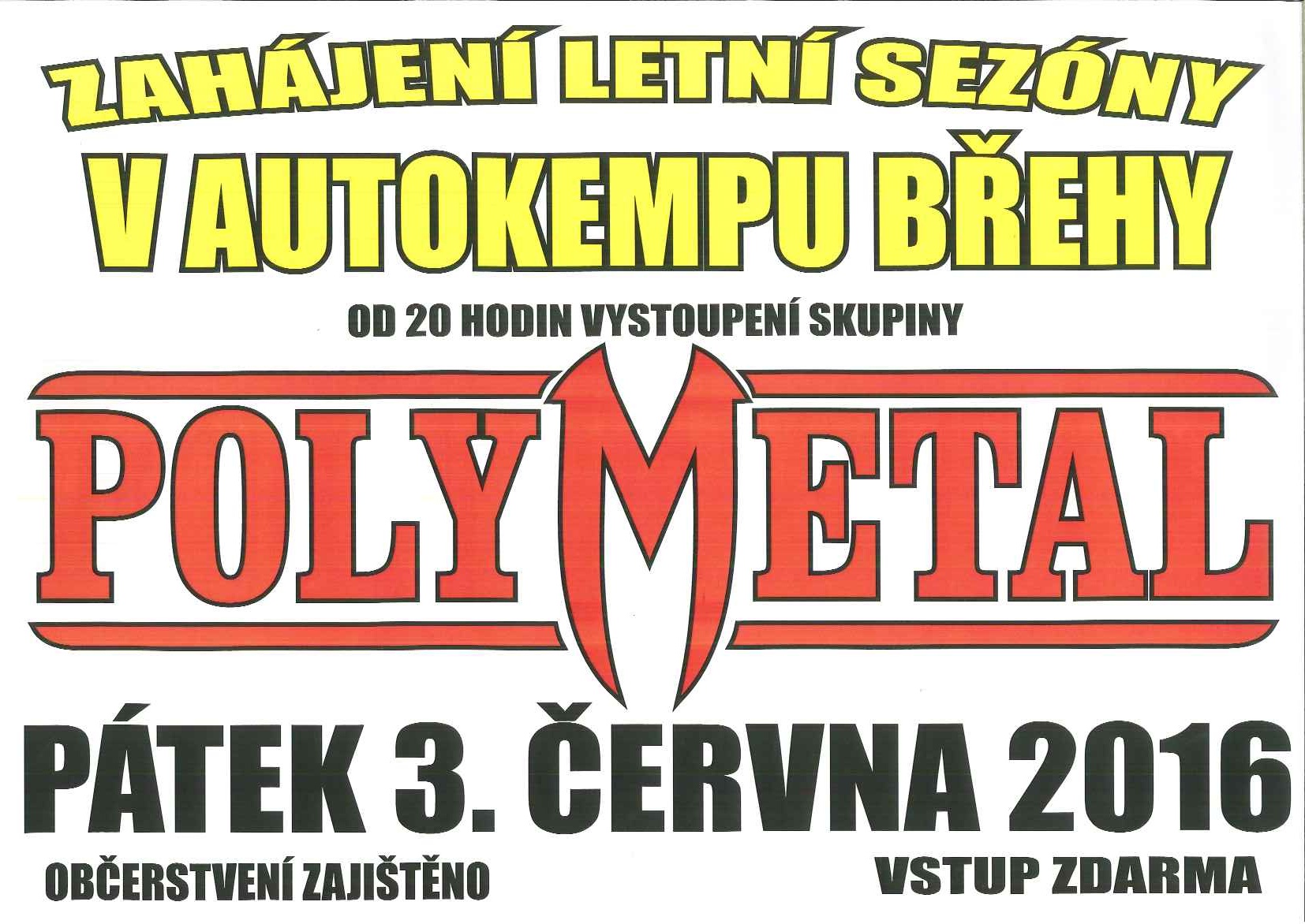 plakat_Polymetal_2016V pátek 3. června 2016 od 20 hodin zahraje před autokempem Buňkov kapela Polymetal u příležitosti zahájení kempařské sezony. Vstupné zdarma.